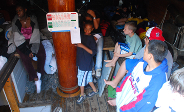 Soon enough, the students have settled down (and the adults who participated in the games are worn out), so we head back on board.