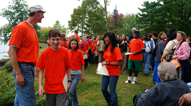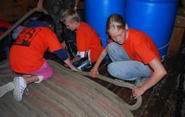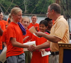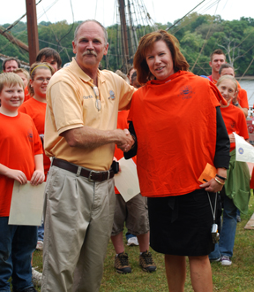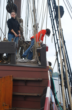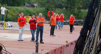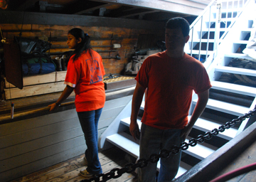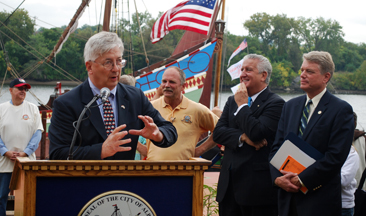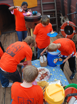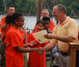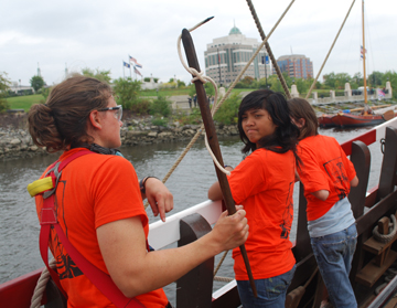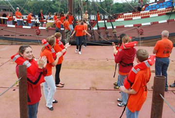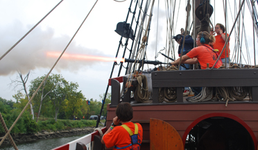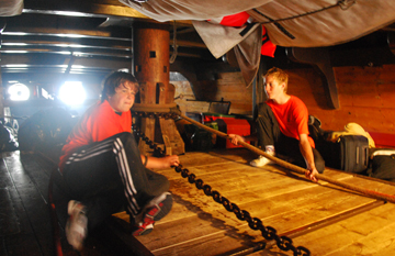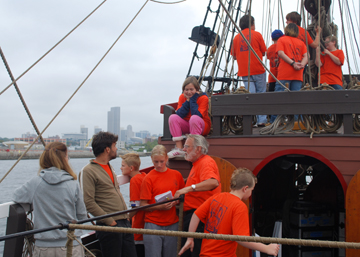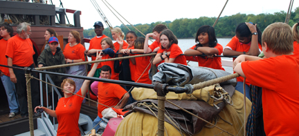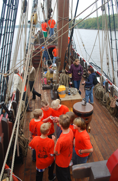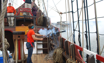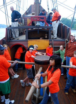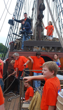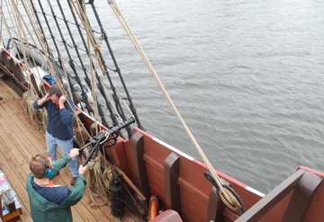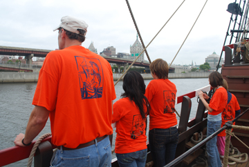 The two and twentieth, was faire weather: in the morning our Masters Mate and foure more of the companie went vp with our Boat to sound the Riuer higher vp. The people of the Countrey came not aboord till noone: but when they came, and saw the Sauages well, they were glad. So at three of the clocke in the after-noone they came aboord, and brought Tabacco, and more Beades, and gaue them to our Master, and made an Oration, and shewed him all the Countrey round about. Then they sent one of their companie on land, who presently returned, and brought a great Platter full of Venison, dressed by themselves; and they caused him to eate with them: then they made him reuerence, and departed all saue the old man that layd aboord. This night at ten of the clocke, our Boat returned in a showre of raine from sounding of the Riuer; and found it to bee at an end for shipping to goe in. For they had beene vp eight or nine leagues, and found but seuen foot water, and unconstant soundings.