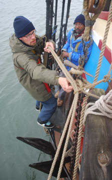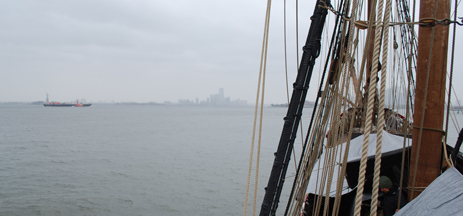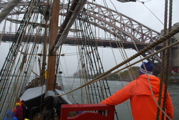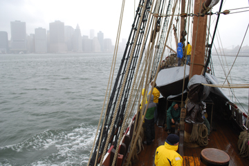 As the afternoon begins, the tide begins to turn. We need to ride the flood through the rapid East River in order to make any reasonable progress, so all hands report to their stations as we prepare to weigh anchor.