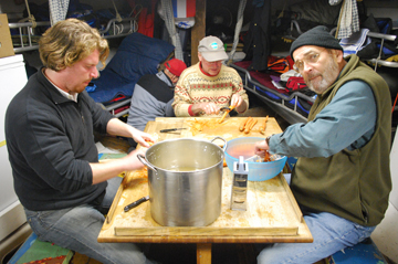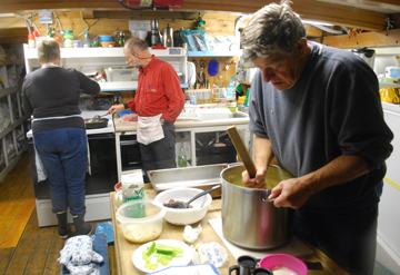 The galley is always a popular hangout on days like this, so Ms. Bruijn has no shortage of assistants helping her prepare lunch and dinner.