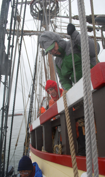 Our remaining 18 crew members will remain with us all the way to New London. For now, however, as the sun sets and the wind and rain picks up, the crew simply retreats to the warmth and comfort of belowdecks.