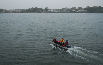 Once again we slice through the waves, rounding Governor's Island to approach the southern mouth of the East River.