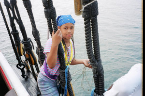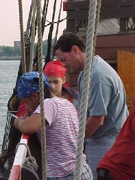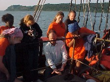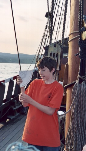 (left) Nick demonstrates the use of the quadrant, which he used