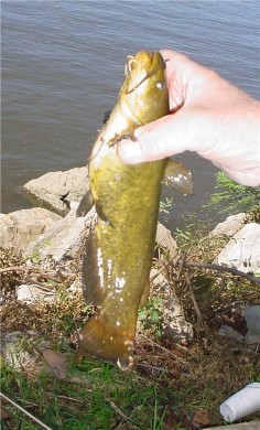 While exploring in the Zodiac (our inflatable support boat) off of Beacon, student crewmembers on the first leg encountered the fisherman who caught this catfish. He was proud to show it off and answer a few questions about local varieties of fish life. |
