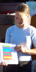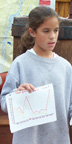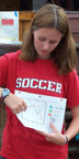 As the students work, our teachers review their progress, offering advice on how to organize and present their data. To the right, Mrs. Colley checks some students' math. |
