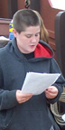 1200: As we near our anchorage, Mr. Prime takes a break from advising students to prepare one of our swivel guns to fire a series of salutes as we pass Mrs. Lawler's house in Coeymans and again when we set anchor. After prepping the swivel gun, let steps aside and lets Mr. Mangrum and Mr. Terry do the actual firing. To the left, Mr. Prime blows on a linstock to keep its fuse lit until we're ready to fire. Behind him, the swivel gun is mounted and ready on the Quarter deck. |