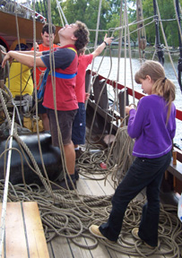 2045: Each night of this Voyage of Discovery, Mrs. Fountain has wrapped up the evening with the students by gathering them on the orlop deck and asking them what the high point of that day had been for each one of them. Since this is the last night of the voyage, she decides to ask the students for their high point from the entire voyage instead. The adults gradually join in, and soon the entire crew is gathered on the orlop stairs, talking freely about what they enjoyed the most about this trip and what improvements we could make for future Voyages of Discovery. 2100: By unanimous decision, we decide to have an early lights out. After a brief anchor watch briefing, the crew retreats to their bunks for one last night aboard the Half Moon. We have perfect sleeping weather, and many students opt to sleep on the weather deck. |