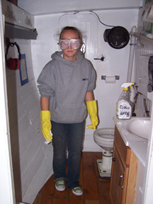 Here she's experiencing the glories of maintenance duty. This job isn't just glamorous -- it's vital. Scrupulous sanitation is one of the few things that protects a modern ship's crew from the rapid spread of disease so problematic for our 17th-century counterparts.