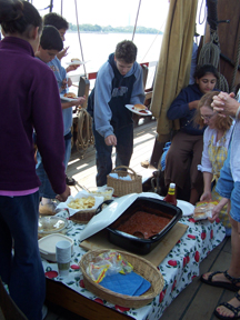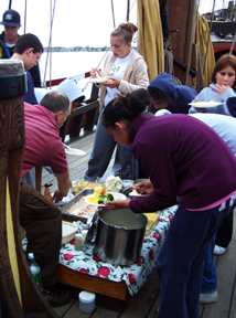 As we clear Governor's Island and venture across the harbor, our cooks serve up an appropriately warm lunch for this cool day: sloppy joes. (With some vegetarian alternatives for those who are interested.)