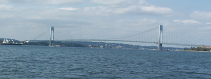 We've now crossed the harbor and passed under the Verrazano-Narrows Bridge, linking Staten Island (pictured to the right) and Brooklyn (to the left).