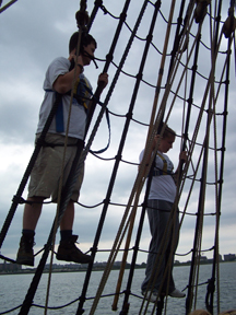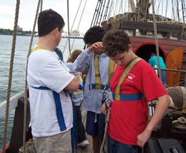 Mr. Terry also leads groups of students through harness training so they can climb aloft. We'll discuss climbing the rig in more detail on our Shipcraft page, so check back for updates.