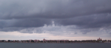 Now that we're underway, we look southward toward the next leg of our journey. On the southern horizon, past the Tappan Zee Bridge, the towers of Manhattan rise to greet us.