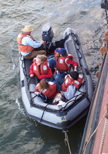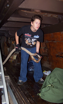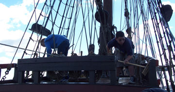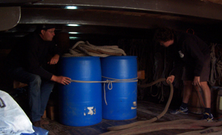 After rising to the notes of Mr. Weisse's reveille, the student crew stows their gear and once again prepars to weigh anchor.