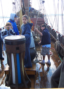 As the afternoon begins, once all the students are back on board and a light lunch has been served, our teachers gather the student crew on the orlop deck to introduce them to their team presentations.