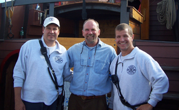 Mr. Dawson (out of view on the fore channel), Mr. Morency, and Mr. Terry form our fore deck crew. On the captain's command, they lower the anchor to the waterline, release the fid (or as our crew commonly calls it, the "carrot"), and the anchor is away.