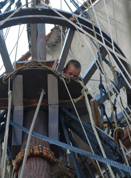 ...while Nick is stationed in the fore top. It's a lonely business, being a top man; they'll remain up here, on duty, for much of the afternoon.