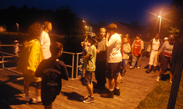 We walk the boardwalk and discuss the marsh's ecosystem. After half an hour on land, we return to the ship and get the good news: we're familiar with this port, so anchor watch will not be required tonight. By 2200 hours, the crew are snug in their sleeping bags.