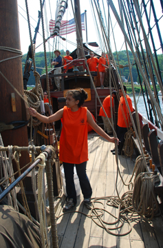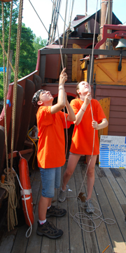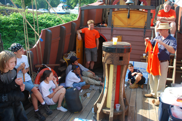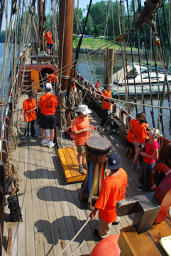 The Half Moon will be open for public tours in just two days. Before the students are dismissed, they will help us set up for our dockside programs.