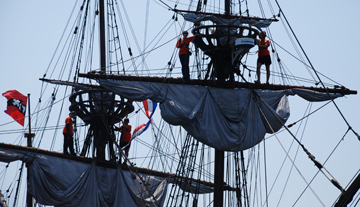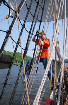 We also send up a few eager crew members, such as Danielle here, to work the topmasts and prepare for our celebratory arrival.