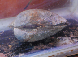 Another stowaway, this tiny crab was discovered on the orlop deck after being carried in on the anchor rode in Niantic Bay. We placed it in the aquarium where, unfortunately, we think it was immediately eaten by its larger cousins. A number of snails suffered the same fate; the clam should be thankful for its thick shell.