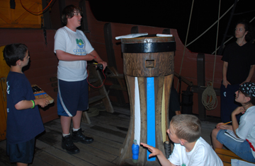 The final phase of the student projects was, of course, the presentation itself. The students spent the morning and afternoon of Day Six graphing the data they had collected and preparing written reports on their materials, methods, and conclusions to accompany their oral presentations. These presentations were delivered that evening, after the Half Moon had docked in Glastonbury. Each presentation was also accompanied by a round of questions, in which the students considered possible sources of error and ways these experiments could be improved in the future.