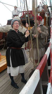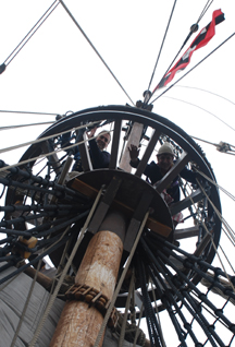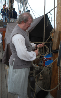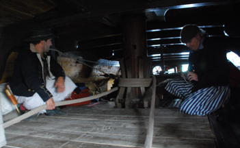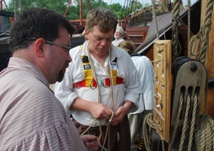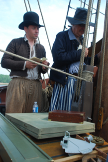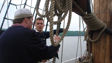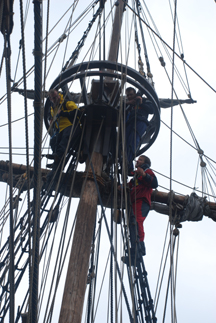 Those members of our re-enactor crew who arrived last night can now take the opportunity to receive training in the rig.