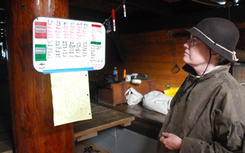 Down in the comfortable warmth of the galley, Paul Camina looks for interested parties to play "Goose," a traditional Dutch board game (which is usually played with a few wagers on the table).