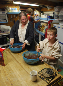 Down in the galley, our cook, re-enactor Laurie Waller, and her galley assistant Nick are allowing themselves a slight risk of historical anachronism in the name of fudge brownies.