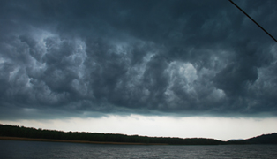 The rain may have passed, but the storm front remains nearby. We keep a close eye on the looming thunderheads to the north, which regularly flash with lightning and softly rumble with thunder.