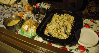 Dinner is served! Tonight we're enjoying a medley of chicken, peas, and rice.