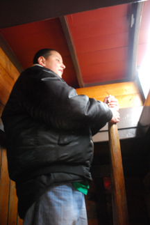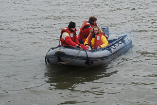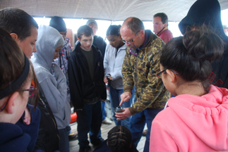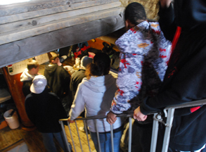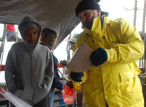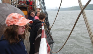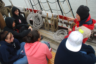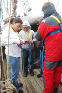 Students still have time to take in the scenery, but by now they tend to cluster in areas of the deck sheltered by the wind.