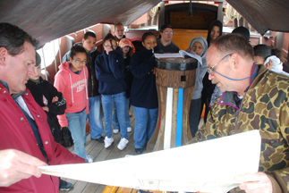 After lunch, Captain Reynolds and Mr. Linehan lead the students through another orientation session, this time teaching them the basics of how to read a chart.
