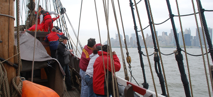 As we motor north, retracing our path, the crew enjoys the opportunity to sight-see the daytime skyline of Manhattan.