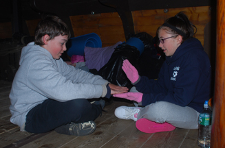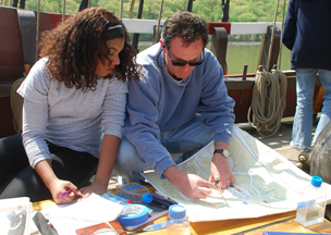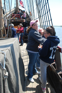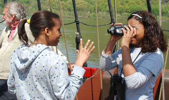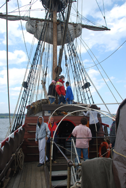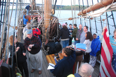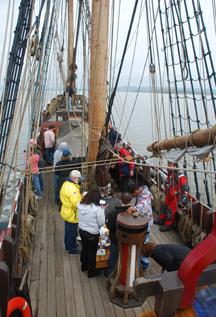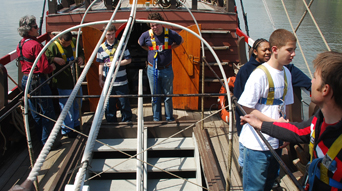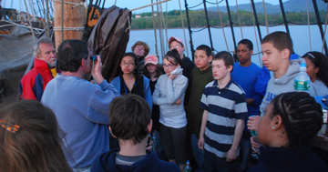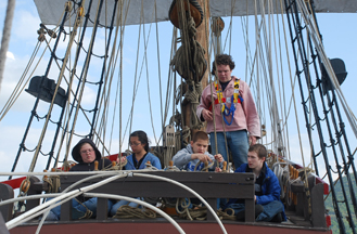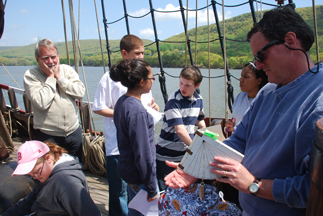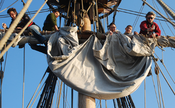 We call all hands on deck and divide the students into two sail handling teams; one to work the fore mast, and one to work the main.