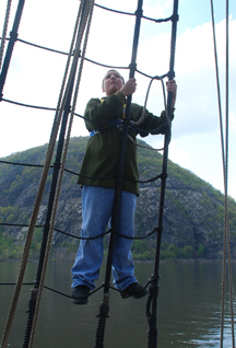 As we peel away from Newburgh-Beacon Bridge, we set the sails and shut off the engine. Mr. Schuijer acts as main mast captain, while Mark Morel takes the position of fore mast captain.