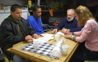 Speaking of tomorrow, the orientation phase of the students' projects is winding to a close. Tomorrow brings a push to begin collecting data. Keith and Beniah are studying solar energy and charting the sun's movement across the sky, so they'll have to get started first thing tomorrow morning. Tonight, they sit down in the galley with Mr. van Aken and Dr. Jacobs to work out their ideal procedures.