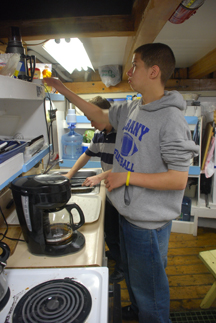 Meanwhile, Jacob and Muhammad are also hanging out in the galley -- they've volunteered to help clean dishes.