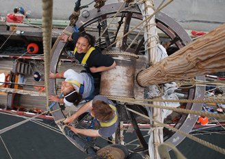 After dessert, many students decide to ollowing Daniella's lead and climb the rigging one more time.