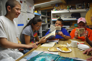 The students take the opportunity to relax and unwind while the senior crew turns their sights to the major tasks still to be completed today.