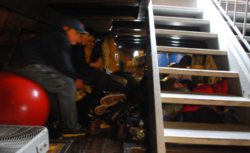 The students get themselves organized as we gradually ramp up for the morning's events. The students rummage their gear once last time, packing up and collecting all of their bags in the center of the orlop deck.