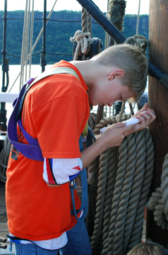 The study of comparative temperatures straddles the arenas of water and weather science. Students take temperature readings of the air, using a digital thermometer. Simultaneously, water samples are collected from the river's surface using a canvas bucket and tested using a wet thermometer.