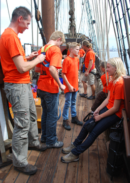 Even after the students have been trained in the use of a safety harness, they still face one more challenge before they can be cleared to climb the rigging.
