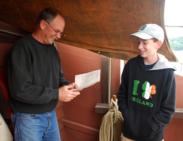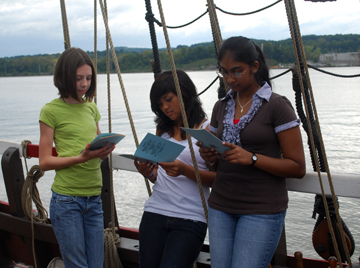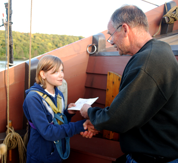 The Replica Ship Half Moon Crew Rating Log/Replica Schip Halve Maen Bemanning Rang Log is a brand new addition to the Voyage of Discovery program as of the 2009 Fall voyage, though its history actually predates the Voyage of Discovery educational program itself! In 1998, while developing the Voyage of Discovery concept, the Half Moon crew experimented with a program called Sea Cadets. An early version of the Crew Rating Log was central to that idea, and we're happy to bring it back in an updated form to mark the 10th anniversary of the first Voyages of Discovery.