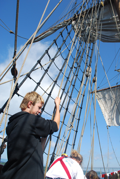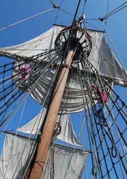 These sails both propel and help steer the ship. In fact, the fore sails have more effect on determining the Half Moon's direction than its rudder!
