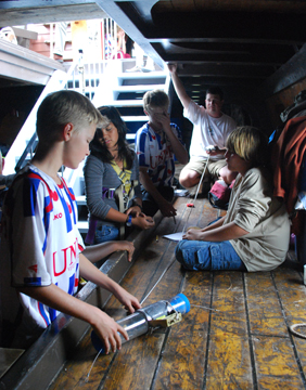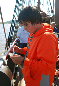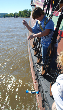 On the Half Moon, our students take temperature readings both from samples drawn from the surface (usually as part of comparative temperature studies), and from the water column, which means water collected from different depths at a single location.