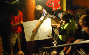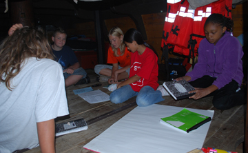 The students spent the morning of Day Seven working together on the orlop deck to analyze their data and prepare written graphs.