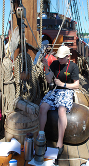 During the Half Moon's data collection layover in Niantic Bay, Alex, Jon, and Tajanae will construct a simple machine to lift a lead ingot, and will determine how different configurations of the block-and-tackle components of their rig affect the force needed to lift this weight a set distance.