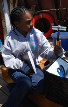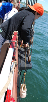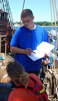 During the ship's data layover at Niantic Bay, DeNiro, Matt, and Nadia will spend the day tracking the speed and direction of the current, as well as practicing using the lead line to sound the water's depth. They will extend this research at our East Haddam layover, using both collecting their own data and utilizing the aid of Anchor Watch to track current speed and direction, wind speed and direction, and height of tide over a full 24-hour period.