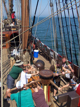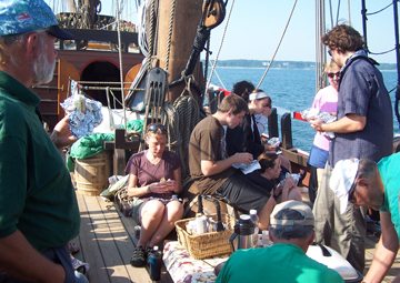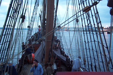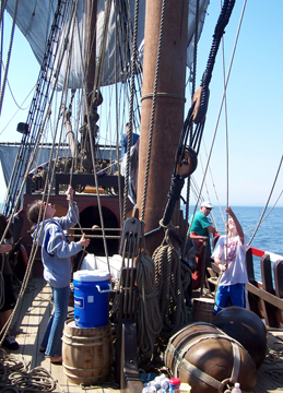 The Half Moon is safely docked at New London, bringing our voyage to an end. A few of our crew members must disembark immediately, some will stick around to help prepare the ship for our next journey, and some crew are set for the entire voyage to come. In three days, the students arrive and the 2009 Half Moon/Goodwin College Fresh River Voyage of Discovery will begin. Until then, the crew will clean and reprovision the ship -- and find some time to relax!