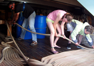In the meantime, it's relaxation time for the off-duty crew members (including all of Port Watch, who have just completed their shift). For their part, Ms. Reynolds and Ms. Robinson launch back into the epic cat's cradle marathon they started last night.